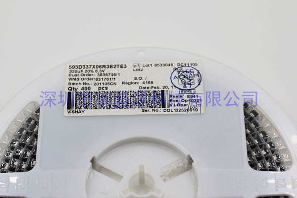 產(chǎn)品名稱:VISHAY鉭電容 7343 6.3V 330UF 593D337X06R3E2TE3