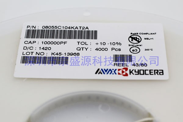 產(chǎn)品名稱:AVX陶瓷電容 0805 50V 0.1UF 08055C104KAT2A