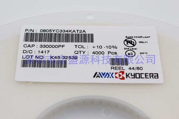 產品名稱:AVX陶瓷電容 0805 16V 0.33UF 0805YC334KAT2A