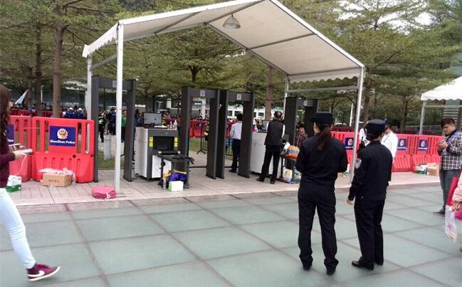 2014年12月7日,我司的安檢設備為深圳第二屆國際馬拉松賽保駕護航!為了確保這次深圳國際馬拉松賽能夠順利進行,每一個在進入賽場的人都必須經過安檢,在創藝龍的X光安檢機的保護下,從下圖就可以看出創藝龍X光安檢機安裝在賽場門口,安檢工作做得如此之嚴謹,可見安全多是多么的重要。