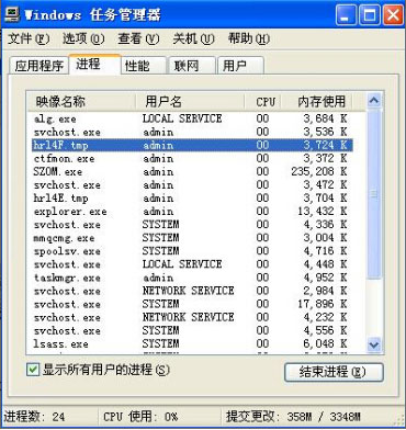 木馬程序或者病毒運行而引起的窗口變小的情況,這時同時按住 Ctrl+Alt+Del鍵調出操作系統的“任務管理器”,我們會發現除了“SZOM”的軟件外還有其他的運行程序。