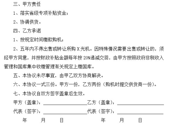 為貫徹落實省級財政購機補貼政策,做好X光快遞安檢機購置工作,經雙方協商,訂立本協議。