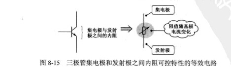 如圖8-15所示是三極管集電極和發(fā)射極之間內(nèi)阻可控特性的等效電路。