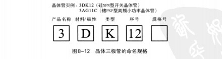 我國對晶體三極管的命名規(guī)格見圖8-12。