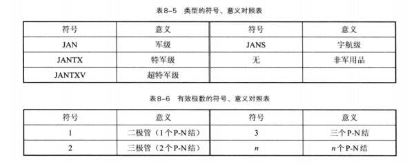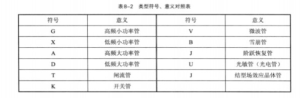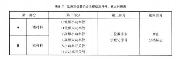 對于歐洲生產(chǎn)的三極管,命名規(guī)格見表8-7所列。