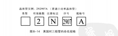 美國生產(chǎn)的晶體三極管的命名規(guī)格見圖8-14。